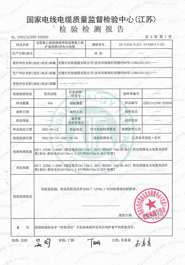 ZA-YJV22 型式試驗(yàn)報(bào)告